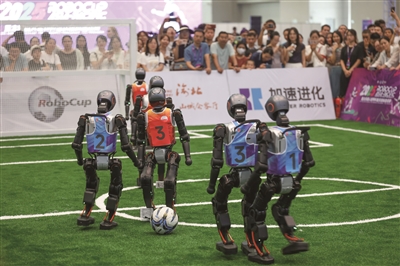 9月5日,2025世界智能产业博览会在重庆开幕。本届智博会设置智能网联新能源汽车、数字城市、智能机器人、智能居家、低空经济五大专业板块,立体呈现低空无人机配送、多场景端到端辅助驾驶、智能机器人人机互动等应用场景。这是在智博会上拍摄的机器人3V3足球赛。