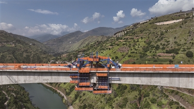 9月7日,位于云南省昭通市鲁甸县江底镇境内的渝昆高铁江底牛栏江特大桥实现全桥合龙。大桥的合龙标志着桥隧占比高达87.4%的渝昆高铁建设取得关键性突破,为全线按期建成通车奠定了坚实基础。这是渝昆高铁江底牛栏江特大桥合龙现场(无人机照片)。