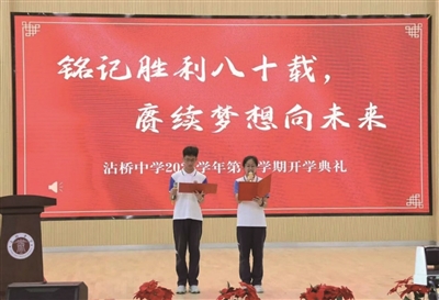 新学期伊始,沾桥中学师生将以抗战精神为动力,逐梦前行,共谱学校教育新篇。