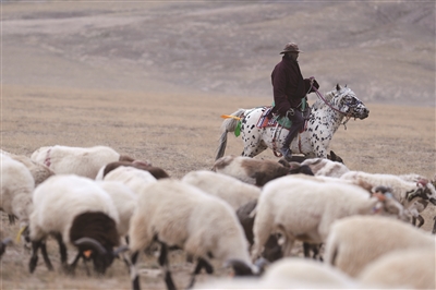 9月9日,在青海省海西州都兰县,一名牧民在转场途中。近日,位于柴达木盆地东部的都兰县牧民开始秋冬季转场。在都兰县热水乡,牧民们带着全部家当,将在三四天内驱赶牛羊转场数百公里,从夏季草场赶往冬季草场。今年都兰全县进行转场轮牧的牲畜约123万头(只),此次转场预计在十月中旬结束。