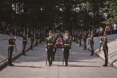 9月13日,礼兵护送志愿军烈士棺椁入场。