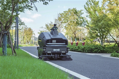 商报讯(记者 蔡杭吉 摄影 李子逸)在余杭南湖未来科学园区,“有鹿 - AI130” 商用巡扫机器人正自主规划路径清扫路面。这个搭载大模型“通用大脑”的设备,将传统清扫设备部署周期从1-2周压缩至即装即用,节能30%以上,单位面积碳排放量降低40%,是杭州数字经济活力的生动注脚。
