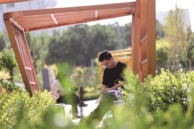 9月16日,市民在甘肃省兰州市城关区盘旋路口的一处公园内休闲。近年来,兰州市聚焦打造“300米见绿、500米见园”社区生活圈,大力推进口袋公园建设,将绿色生态融入市民生活,通过见缝插绿、闲置地改建等方式激活“零碎空间”,让市民在推窗见绿、移步赏景中提升幸福感。