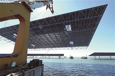 9月18日,工人在河北省昌黎县海域光伏发电场建设工地操作机械设备施工。据介绍,该项目设计装机容量180万千瓦,建成并网投运后,预计年发电量约27亿千瓦时,每年可节约标煤84万吨、减少二氧化碳排放215.95万吨,为推动海洋经济高质量发展、落实“双碳”目标提供有力支撑。
