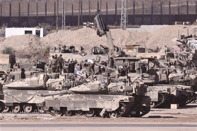 这是9月16日拍摄的位于加沙边境以色列一侧的以军部队。以色列国防军16日上午发布声明说,以军两个师的部队正在加沙城作战,以军总参谋长埃亚勒·扎米尔已进入战区。新华社发