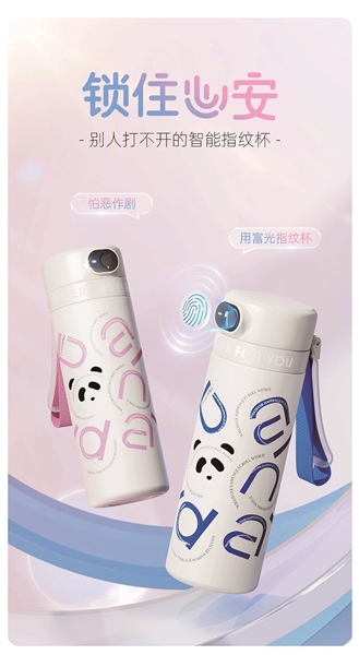 从材质来看,指纹水杯和普通水杯的差别不算大,例如两者内胆都采用食品级316不锈钢材质,与水接触的杯盖部位以食品级硅胶材质为主。但从功能和设计上看,两者之间还是存在一定区别,以富光的一款指纹水杯为例,其杯盖内置智能芯片,具备高灵敏感应功能,不管是加水还是喝水,都只有录入指纹才可以打开,同时还带有充电续航的功能。此外,还有不少指纹水杯提供了蓝牙连接功能,家长可以通过连接小程序查看孩子开锁饮水记录,实时监控孩子在校喝水情况。