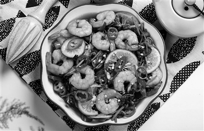 做法:虾仁焯烫立即捞出。准备酱汁,加入蒜末、小米椒圈、香菜梗,鱼露、生抽、蜂蜜(或代糖),挤入半个柠檬的汁,将所有材料轻轻翻拌均匀即可,根据个人口味加减调料。