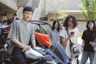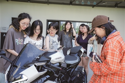 图为春风动力团队与中国美术学院师生进行实车互动。