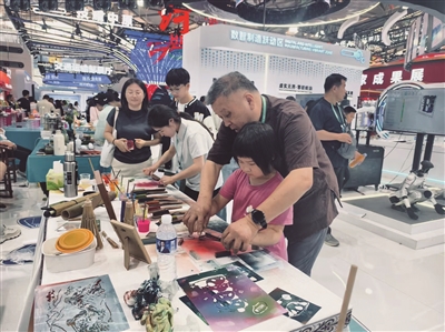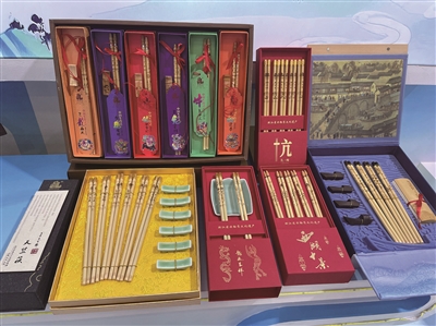 数字浪潮之外,展馆之内亦尽显“杭城风雅”。技能大师沈秋法携“宋韵十里红妆”系列作品亮相,生动再现江南婚俗文化的隆重与浪漫;曾在央视春晚“出圈”的西湖绸伞,于技能大师宋志明手中再度舞动江南风韵;宋代点茶与知观味非遗茶点巧妙搭配,诠释舌尖上的钱塘风情;胡庆余堂将传统中药化作可佩戴的手串,让“江南药王”的百年药香融入现代生活;以《杭韵》《西湖十景诗》为主题的王星记扇子,于方寸之间尽展杭城文化底蕴;取天竺实心竹为材、历经二十余道工序精制而成的天竺筷,则凭借其艺术性与实用性并重,赢得观众连连称赞……