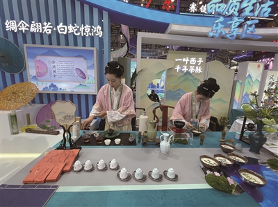 展区另一侧,茶香、药香与茶点香气交织弥漫。茶筅击拂,沫饽如雪,宋代点茶技艺重现千年风雅。“我们希望通过点茶体验,连接中国深厚茶文化,让更多人感受杭城的品质生活。”技能大师朱晓丽说道。与此同时,胡庆余堂国家级技能大师蒋玲霞现场展示手工泛丸技艺,而其旁的AI把脉仪仅需三分钟即可生成一份“数字脉案”,传统与现代在此交汇,吸引参观者排起长队,百年药香与数字科技共同酿就独特的“杭州韵味”。