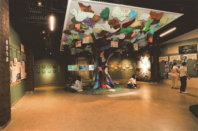 比如,在艺映虬姿展区,包含作品展示和留言墙两部分内容。作品展示区选取了优秀的摄影作品,向观众展示古树名木之美,同时,使用小朋友们的古树绘画作品作为树叶,在展厅中部打造出一株艺术祈愿树,市民游客还可以通过留言,让祈愿树变得更加枝繁叶茂。展览将持续至明年3月22日。