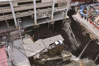 这是9月24日在泰国曼谷拍摄的塌陷路面。当日上午,泰国曼谷一处路面发生塌陷,暂未造成人员伤亡。