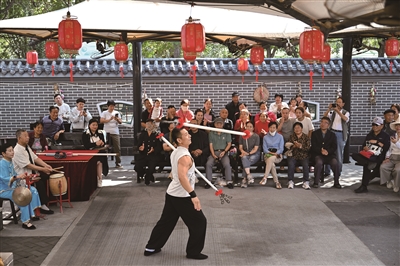 9月25日,杂技艺人在河北省吴桥县吴桥杂技大世界江湖文化城内表演《舞飞叉》,众多表演者用“绝活”引来观众阵阵掌声。第二十届中国吴桥国际杂技艺术节将于9月28日至10月8日在河北省沧州市吴桥县和石家庄市举办。