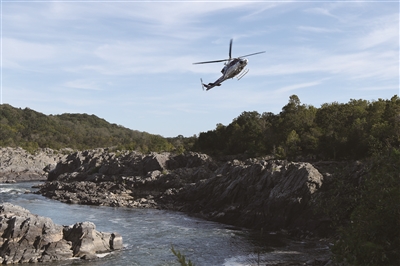 10月3日,在美国弗吉尼亚州费尔法克斯,公园警用直升机在大瀑布公园上空巡逻。受联邦政府“停摆”影响,大瀑布公园游客中心、公共厕所、停车场等服务设施处于关闭状态。美国国会参议院3日未能通过新的临时拨款法案,民主党和共和党的提案均再度遭到否决,这意味着联邦政府“停摆”将继续。新华社发