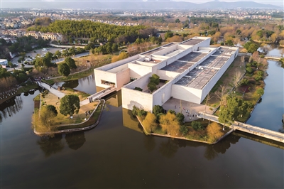 俯瞰博物院的整体建筑,犹如“一把玉锥散落地面”。这座大气方正的建筑由英国著名设计师戴维·奇普菲尔德(David Chipperfield)设计,其理念正是来自良渚文化的一种玉器——玉锥形器。