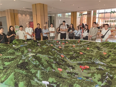 同样让交流团成员感到心旷神怡的还有安吉余村的满目绿意:层峦叠嶂的青山被竹海与茶园覆盖,阳光穿透竹叶洒下斑驳光影,潺潺溪流顺着矿坑复绿后的山谷蜿蜒而下,空气中负氧离子浓度高达每立方厘米2.8万个,深吸一口满是清新的气息。