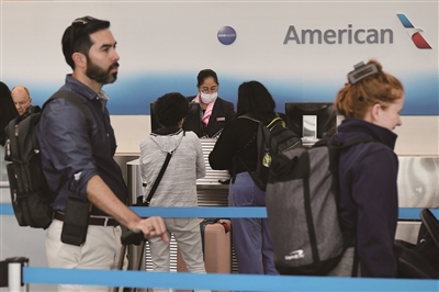 10月10日,美国联邦政府“停摆”进入第十天。据报道,由于空中交通管制员严重短缺,全美航班延误情况更加严重,自6日以来全美已有超过两万架次航班延误。这是在美国弗吉尼亚州阿灵顿的里根国家机场,人们办理值机手续。