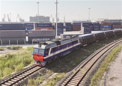 当日,伴随嘹亮悠长的鸣笛声,一列满载家电产品、汽车配件等货物的中亚班列从中铁天津集装箱中心站出发,将经由霍尔果斯口岸出境,驶向哈萨克斯坦等地。