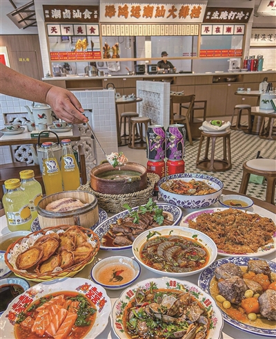 记者发现,如今的商场已经悄然开进不少大排档,以品牌为例,辣不怂·现炒川菜大排档,目前在全国大约有30多家门店,其中90%都开在商场,而食悦廣冬·潮汕鸡煲·大排档目前在全国已开出近20家门店,有一半是商场店。以地区为例,杭州就有不少开进商场的大排档,例如开在天虹购物中心的添虹运潮汕大排档、开在龙湖吾角天街的先启半步颠大排档……