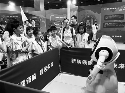 小记者们在讲解员的带领下参观馆内的人工智能展