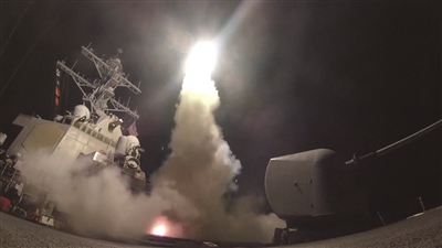2017年4月7日,美国海军舰船在地中海发射一枚“战斧”导弹。据新华社客户端