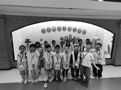 在参观和体验活动结束后,小记者李瑾睿的妈妈拖着儿子给她拍照留念。