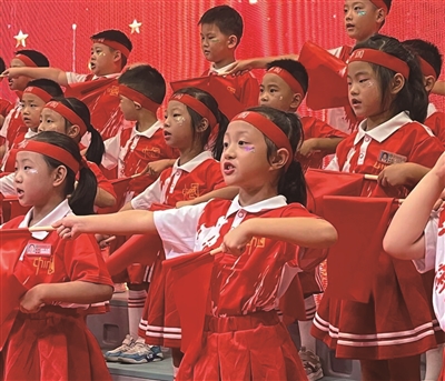 随后,在小主持人清脆悦耳的报幕声中,各年级代表队依次闪亮登场。霎时间,整个校园化作歌声的海洋、欢乐的殿堂。童声虽稚嫩,却汇聚成最动人的交响;童心虽纯真,却承载着最厚重的家国情怀。孩子们用歌声表达对祖国的热爱,用旋律传递新时代少年的朝气与梦想。