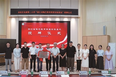 10 月 17 日,良渚第二小学举行“浙江省陶艺教育联盟实验基地”授牌仪式暨 2025 余杭区中小学美术陶艺教育实践培训,中国教育学会美术教育专业委员会学术委员李永正教授等专家领导与师生共同见证这一时刻。