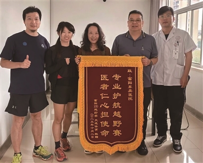 10月19日,主办方负责人特意来到富阳东吴医院,将一面饱含谢意的锦旗郑重地交到金登峰院长的手中。“专业护航越野赛 医者仁心担使命”,不仅表达了主办方对东吴医院医疗保障工作的高度认可与诚挚感谢,更是对每一位参与保障医护人员辛勤付出的最好褒奖。