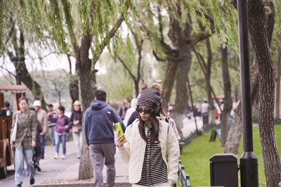 连日来,受冷空气影响,杭州的气温持续走低,并且已连续刮了好几日的大风。昨天,杭州主城区最低气温来到13.6℃,为近期最低,走在路上,不少人已经穿上了冬天的衣服来保暖。此次大风会持续至24日左右,大家出门要做好防风措施。这是昨天下午,市民游客在西湖边顶着冷风游玩。 商报记者 项凯 摄影报道