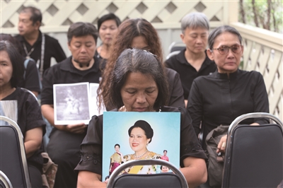 10月25日,人们在泰国曼谷朱拉隆功国王纪念医院悼念诗丽吉王太后。泰国王室宫务处25日凌晨发布公告说,泰国王太后诗丽吉于24日晚逝世,享年93岁。诗丽吉是泰国先王普密蓬·阿杜德的王后,也是现任国王玛哈·哇集拉隆功的母亲。