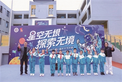 当金秋的微风拂过校园,当丰收的喜悦邂逅浩瀚星河,一场专为少年儿童打造的天文科学盛宴如约而至。10月27日,临平区王蒙实验小学第三届天文节正式拉开帷幕,孩子们在国旗下集结,在实验中探索,在AI表演中惊叹,沉浸式解锁宇宙与科技的双重奥秘。
