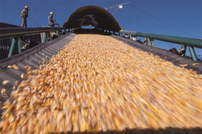 10月31日,在黑龙江省双鸭山市的中粮天兴物流园区专用线上,工人在进行装运作业。