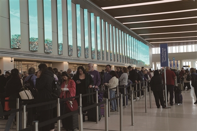 10月31日,在美国纽约拉瓜迪亚机场,乘客排队值机。