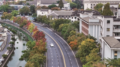 这几天,作为杭城唯一一条以乌桕当行道树的道路,保俶北路两侧的400多棵乌桕叶开始逐渐变红。一眼望去,黄、绿、红等几种颜色交织在一起,仿佛被打翻的调色盘,五彩斑斓,旖旎至极。
