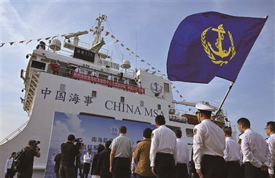 11月13日,我国自主设计建造的2000吨级大型航标船“海巡176”轮正式列编交通运输部南海航海保障中心。“海巡176”轮总长75.2米,型宽14米,满载排水量2360吨,是目前全国交通运输系统最大最先进的航标作业船。这是在海口拍摄的“海巡176”轮列编仪式现场。
