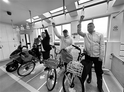 为了安全考虑,建议市民进入候船区之后全程推行,另外,船舱内划定了非机动车停放处,还设置了扶手和拉环,方便乘客在船只运行中拉稳扶好。同时,船上设置了安全引导员,在开航前已进行各项应急管理培训,确保轮渡的运营安全。