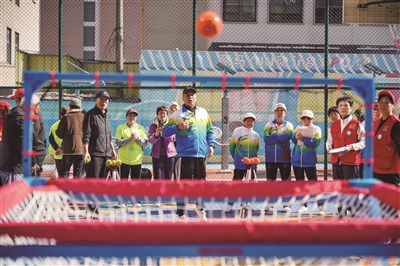 昨天,2025年杭州市拱墅区老年人兜球交流活动在上塘街道蔡马社区嵌入式体育场内举行。活动采用“社区与社团联动”模式,实现专业指导、场地支持、人力保障的无缝衔接,吸引众多老年兜球运动爱好者踊跃参与。图为昨天老年运动员在活动现场体验兜球。商报记者 项凯 摄影报道