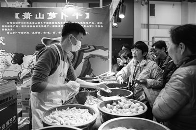 “就是为这口杭州老味道来的!”连续26年参展的杭州萧山党山酱萃食品有限公司摊位前,招牌萧山萝卜干被围得水泄不通,作为杭州人餐桌上的“常客”,这份咸香适口的特产让老顾客频频回头。销售经理朱东曙难掩喜色:“开展第一天就卖了 1500 多斤,销售额达2.6万余元,厂里早备好了5吨货,应对后续更旺的客流,杭州人就认这口本土味。”