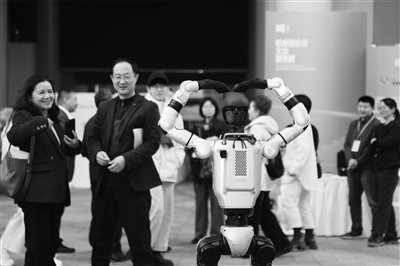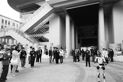 智能机器人现场趣味互动,引得众人驻足围观。