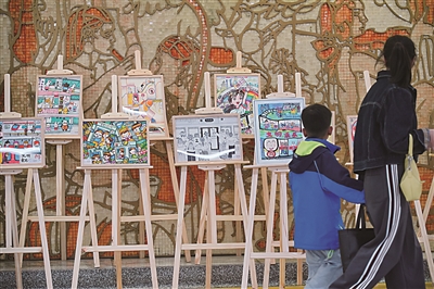 近日,杭州地铁“文明乘车日”系列活动启幕。活动集沉浸式打卡、彩虹课堂、主题画展于一体,以多元形式传递“上车往里,文明有礼”的公益倡议,邀市民共赴与城市温度的双向奔赴。活动中,600余幅中小学生的童真画作在火车东站(东广场)站、市民中心站、江汉路站的主题“童画展”集中展出,成为站厅内一道亮眼的风景线。这是昨天市民在市民中心站K口附近观看主题“童画展”。商报记者 项凯 摄影报道