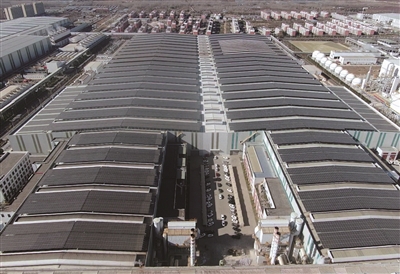 11月27日,山东钢铁集团永锋临港有限公司厂房屋顶上,连片的光伏发电排列整齐(无人机照片)。该项目充分利用厂房屋顶空间,项目运营期25年,2025年预计总发电量约3000万千瓦时。