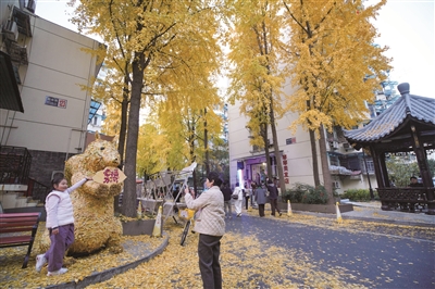昨天,上城区清波街道定安路社区第七届银杏文化节在后市街的银杏林下开幕。文化节为期一周,以全新打造的幸福邻里活动中心、“棉鞋奶奶”工坊等为平台,围绕便民服务与文化生活,设置文明市集、公益服务、杏林文创、美陈打卡等系列活动,举办自然景观与人文情怀交融的邻里聚会。这是昨天市民在后市街的银杏文化节现场打卡留影。商报记者 项凯 摄影报道