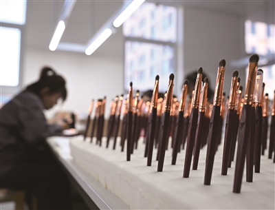 12月4日,河北省青县一家化妆刷生产企业的员工在车间内加工化妆刷。青县化妆刷产业起步于20世纪90年代。目前,青县化妆刷企业年营业收入约30亿元。小小化妆刷,正不断“刷”亮当地县域经济发展。
