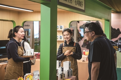 12月5日,为期三天的2025中国(普洱)国际咖啡博览会、普洱茶博览交易会在云南省普洱市开幕。本届博览会以“中国茶咖·香遇世界”为主题,创新打造“咖博会+茶博会”双展联动模式,吸引来自国内外的百余家企业参展。这是参会商在活动现场向顾客介绍咖啡产品。