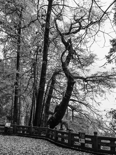 在临安西天目山的悬崖峭壁之上,有一棵被誉为“银杏树王”的古老银杏,树龄高达1.2万年。更为奇特的是,它还在基部萌发出22枝小植枝,这些小植枝相互簇拥,如同子孙满堂,故而得名“五世同堂”。