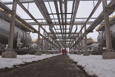 12月8日,在新疆吉木萨尔国家级陆相页岩油示范区,中国石油新疆油田页岩油联合站员工在巡检设备。