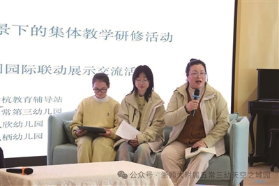 专题报告《打造婴幼儿的第二个家——从理念到实践的专业化路径》强调,托班教育应注重环境温度与自然连接,从一日活动、家园协作等方面提供专业支持。研讨环节中,执教教师分享设计意图与实施反思,听课教师围绕托幼衔接展开交流。五常第二幼儿园胡诗梦副园长与闲林幼儿园王丽萍副园长进行专业点评,指出活动应重视幼儿感知体验,鼓励幼儿主动探索与表达,并为教师后续教学改进提出建议。
