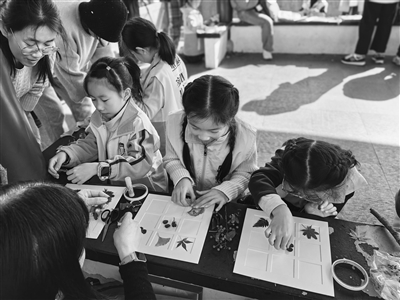 小记者们制作落叶拼贴画