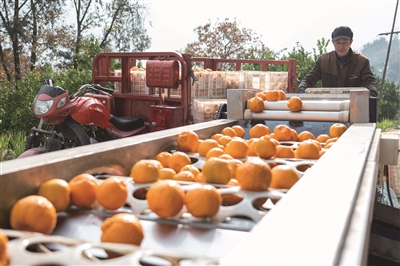 12月11日,在湖北省宜昌市长阳县渔峡口镇岩松坪村,村民在整理分拣刚采摘的清江椪柑。近日,渔峡口镇的清江椪柑进入采销旺季。2024年,该县清江椪柑种植规模达7万亩,年产值约5亿元。产品销往全国29个省市,并出口到马来西亚、加拿大、西亚等国家和地区。
